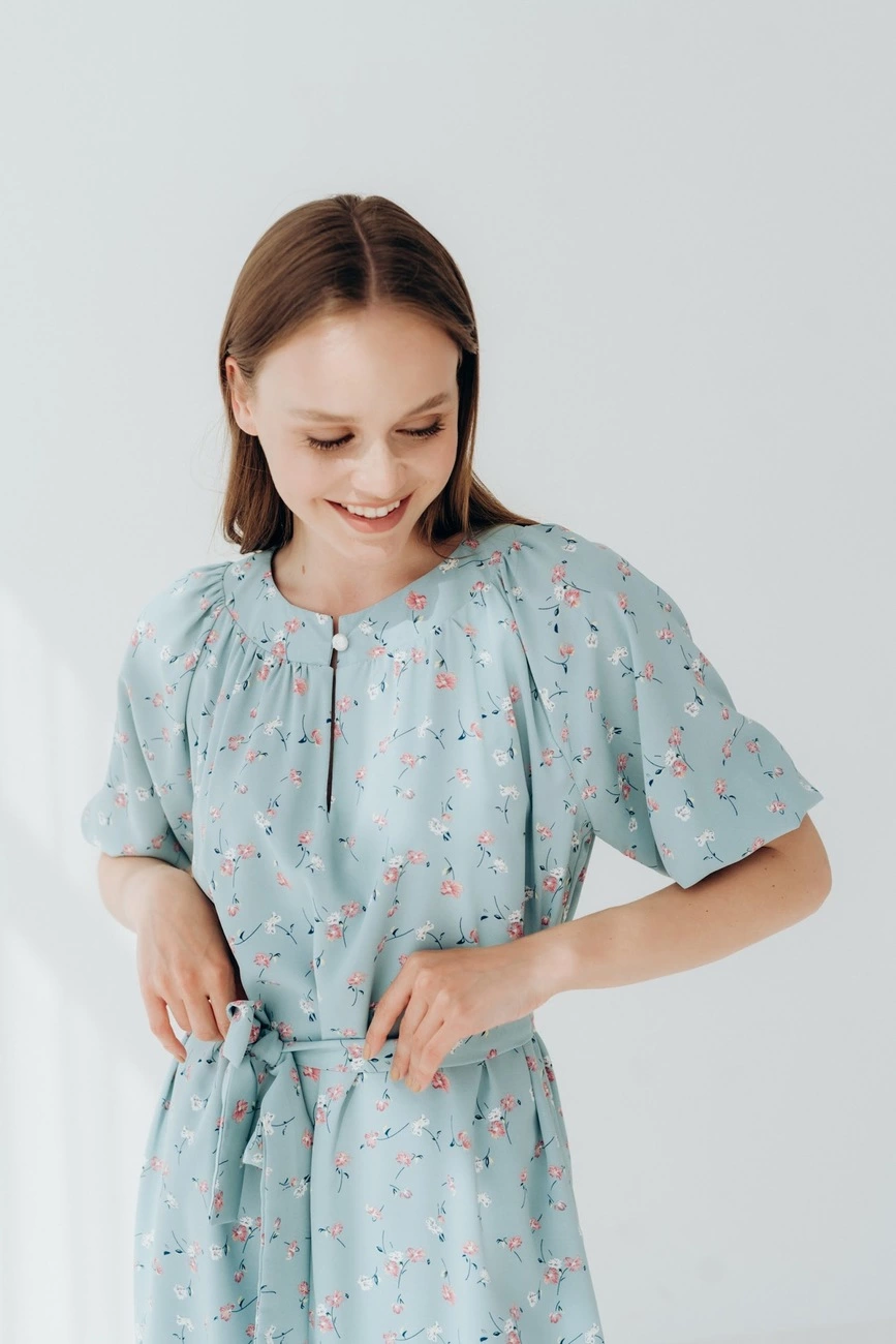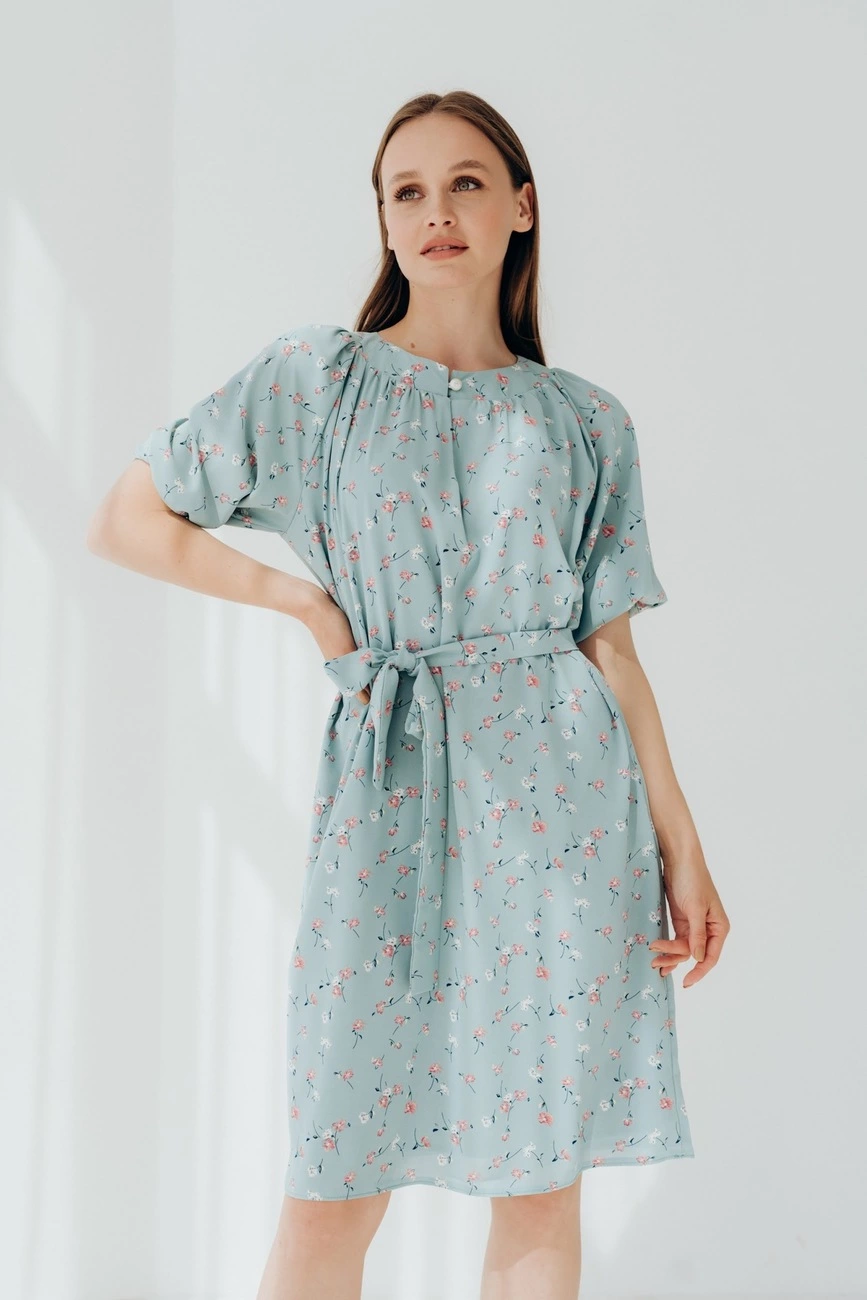 Елегантна сукня з поясом та жіночним фасоном. Ніжна сукня з