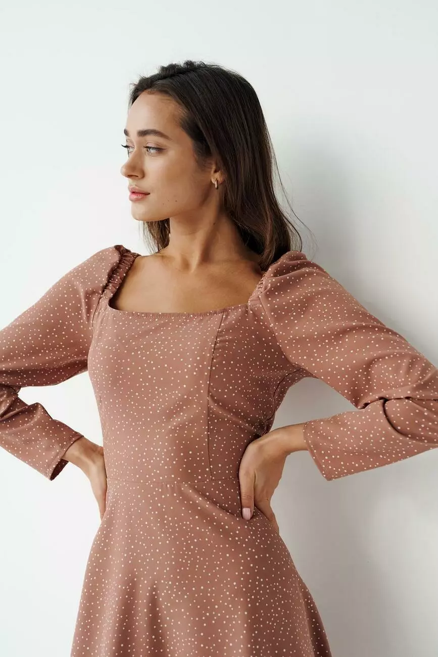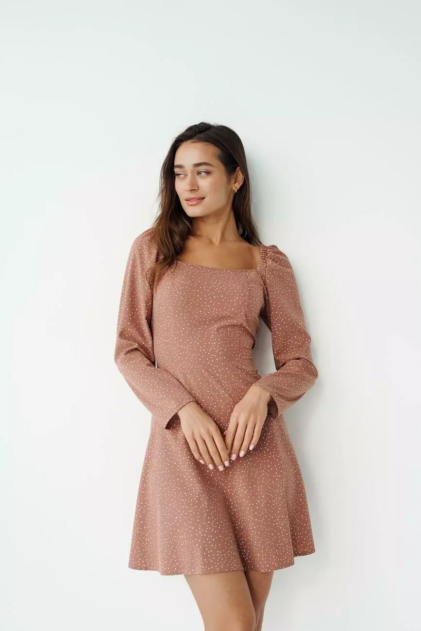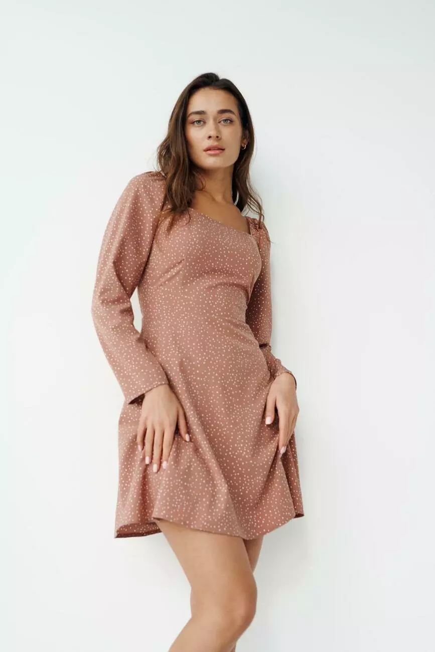 Ніжна міні сукня з довгим рукавом. Фасон підкреслює талію,