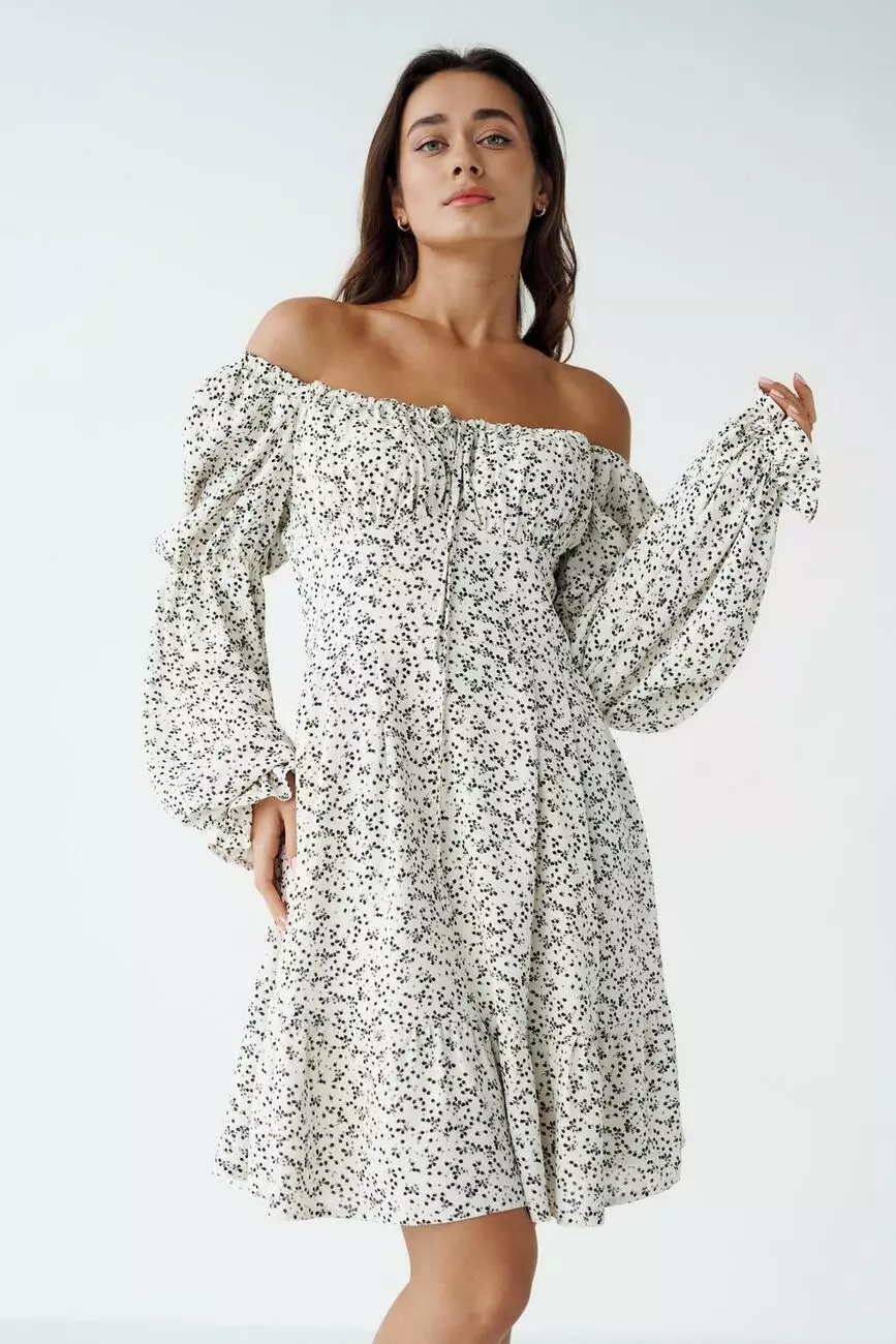 Тендітна сукня з шифону. Сукня міні довжини, завищена лінія талії,